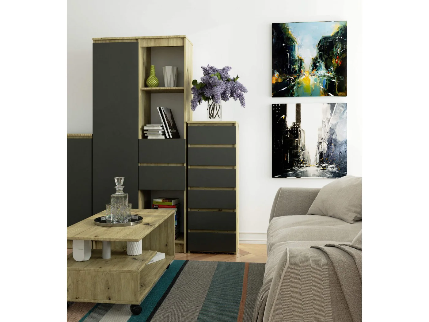 KOMODA CL6 PK DĄB ARTISAN / SZARA