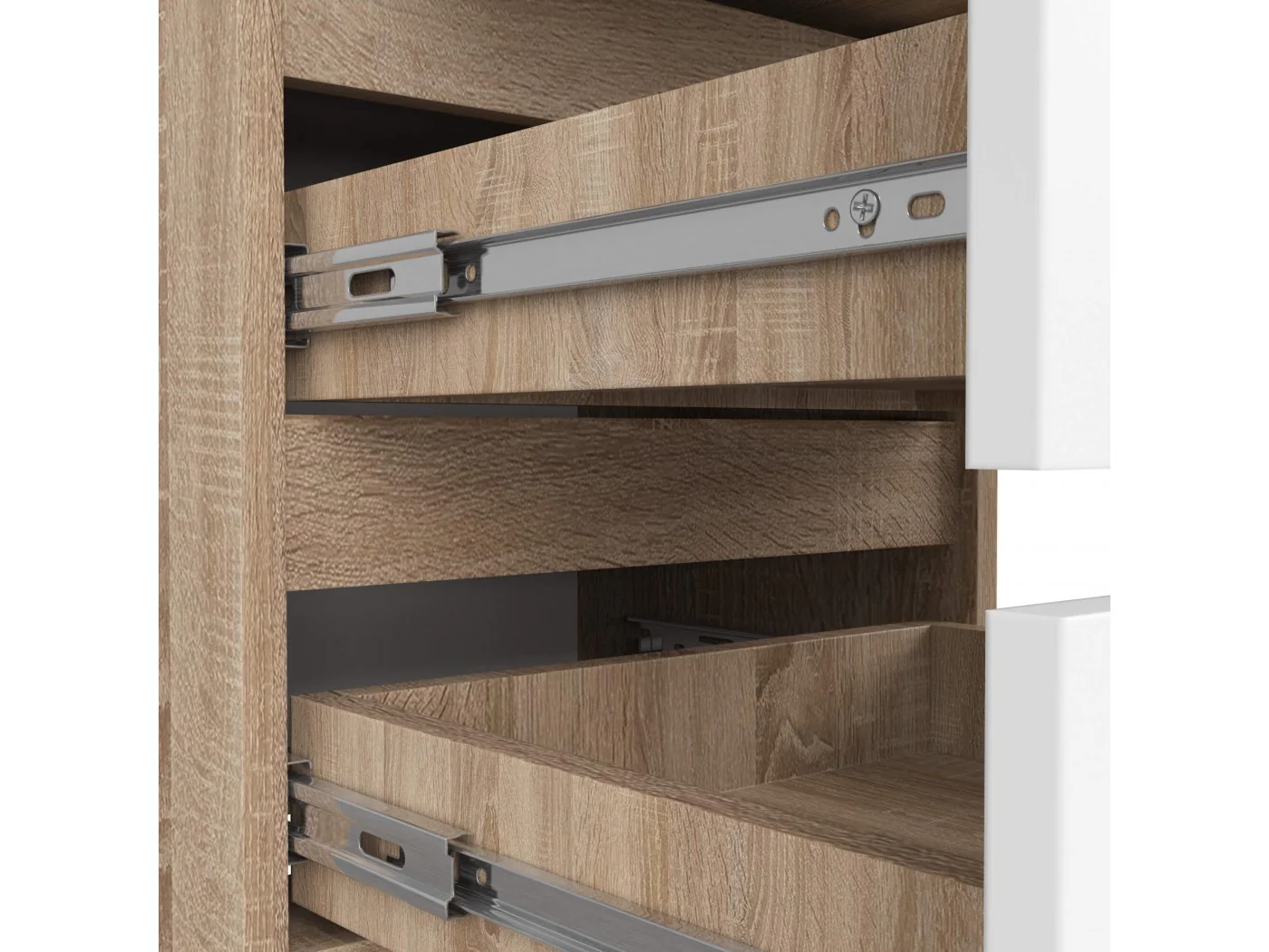 - elegancki wygląd - komoda jest prosta w formie, cechuje się stylowym kolorem dąb sonoma i frontami białymi,