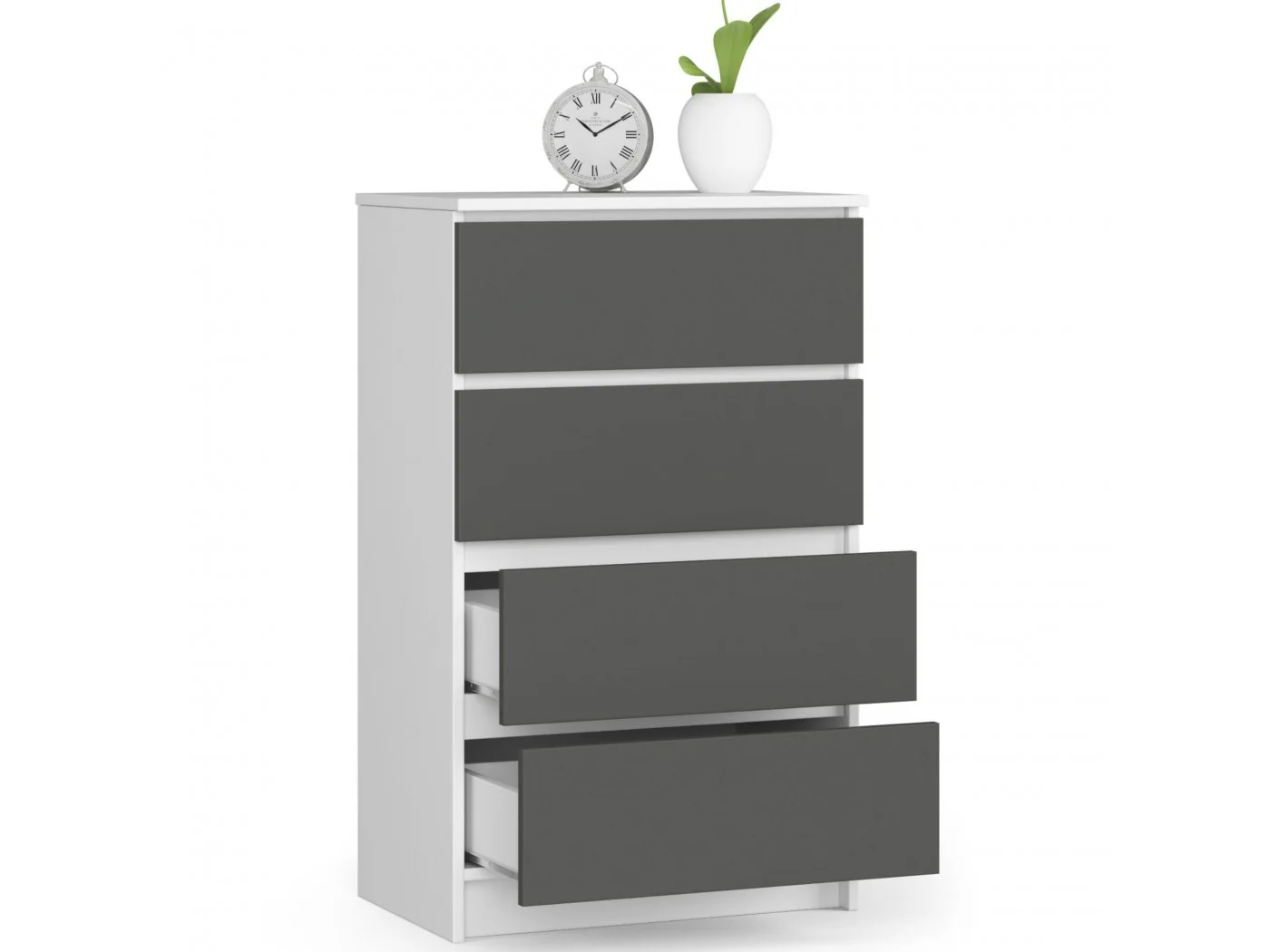 Komoda do salonu K 60 cm 4 szuflady - biała-grafit szary