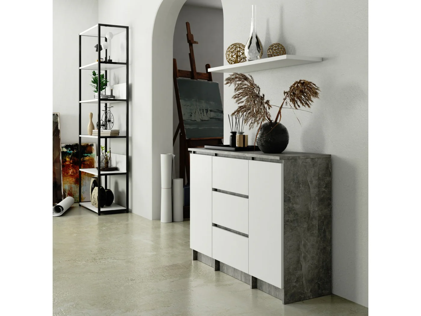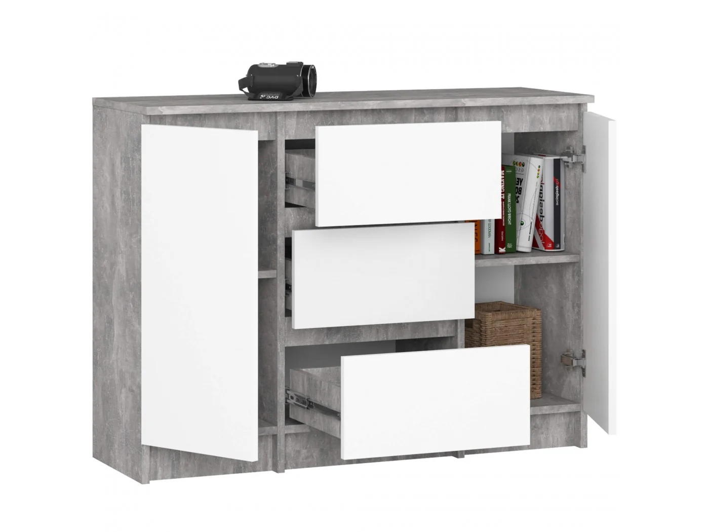 KOMODA K100 2D 3SZ PK BETON / BIAŁY