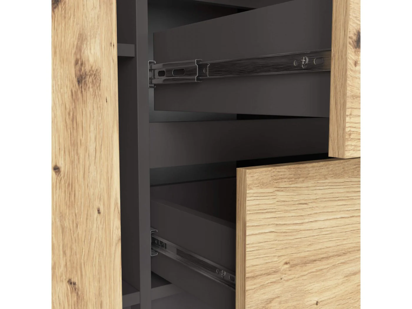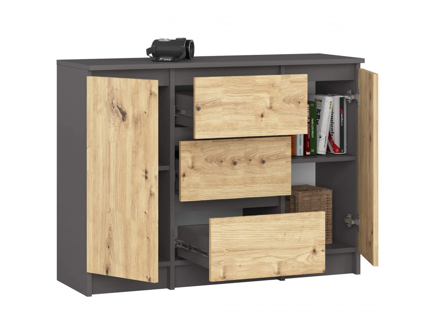 KOMODA K100 2D 3SZ PK GRAFIT SZARY / DĄB ARTISAN