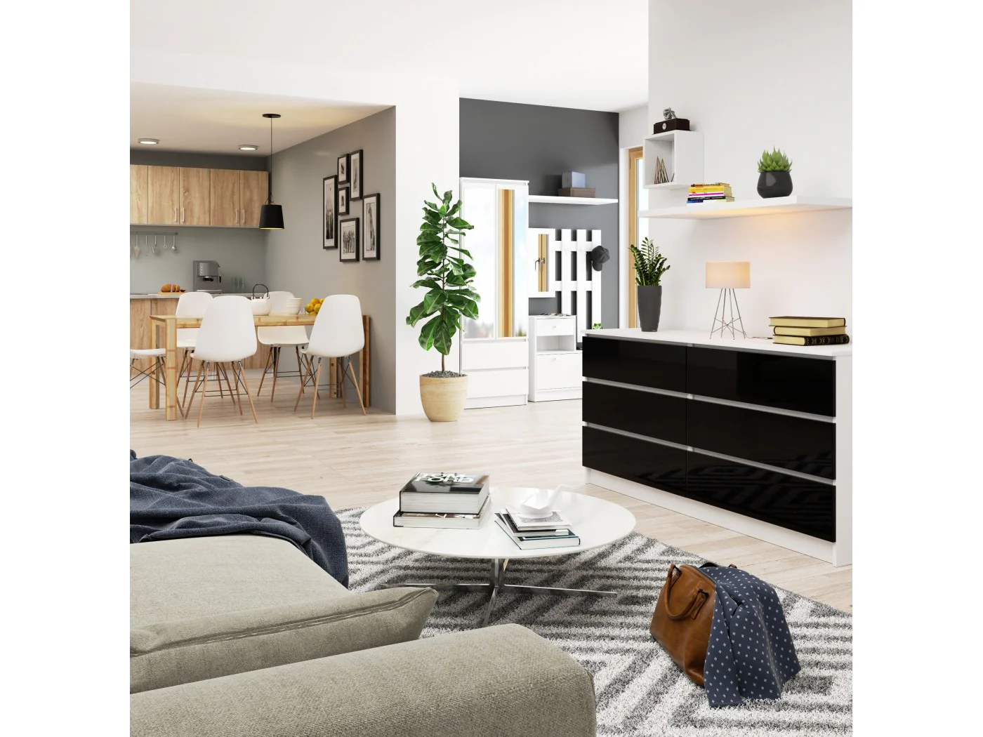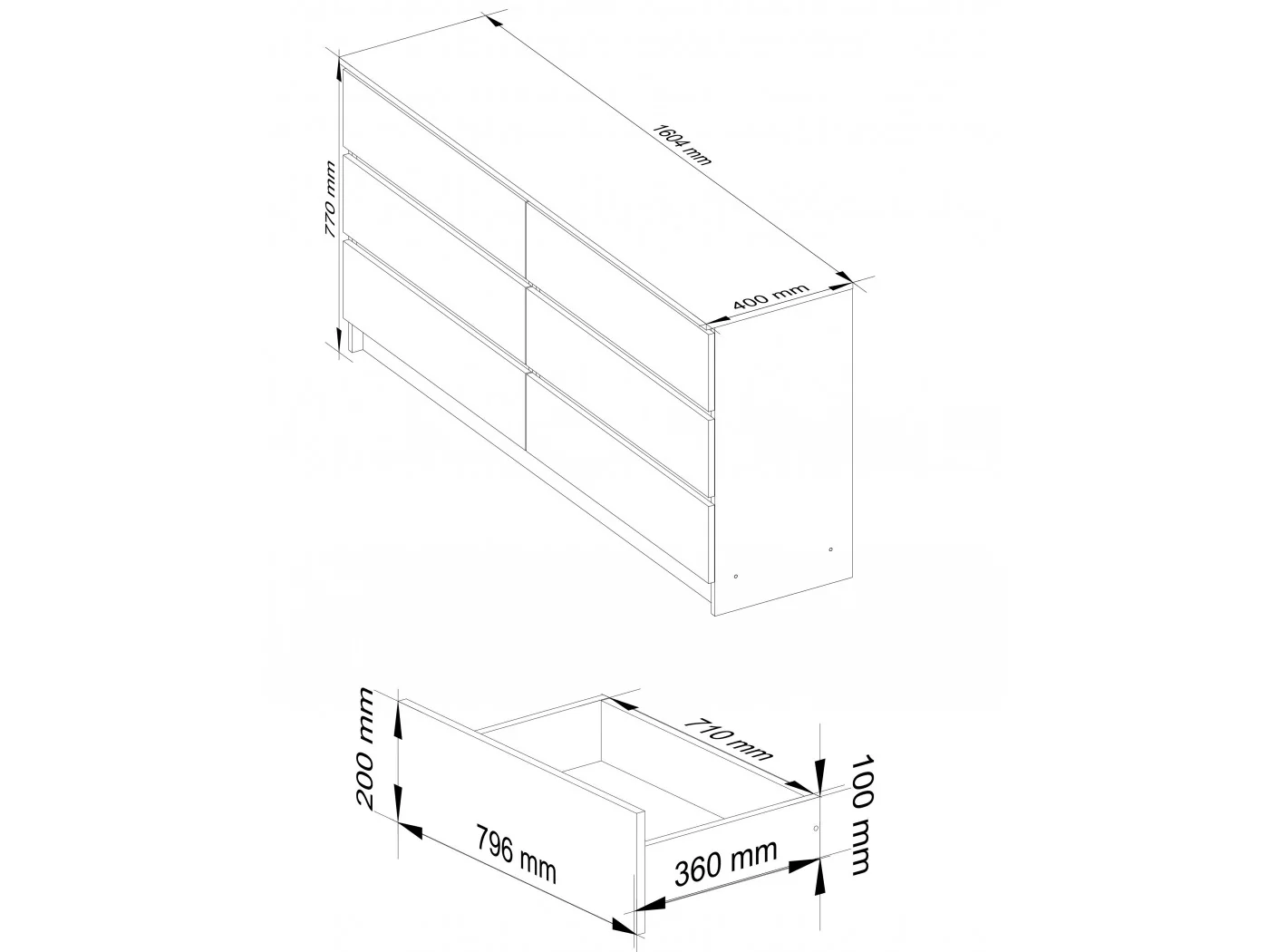 - Korpus komody wykonany z płyty laminowanej biały mat 16mm odpornej na ścieranie