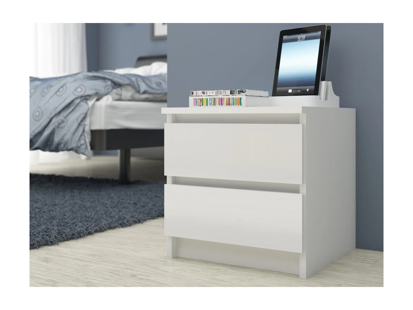 Biała szafka nocna to produkt wysokiej jakości, który doskonale sprawdzi się zarówno w nowocześnie urządzonym, jak i zaaranżowanym w sposób klasyczny pomieszczeniu. Mebel starannie wykonano z trwałej płyty laminowanej o grubości szesnastu milimetrów, która wykazuje odporność na ścieranie. Jego krawędzie oklejono obrzeżem ABS. Prosty kształt i minimalistyczny charakter wpływają na uniwersalność i ponadczasowość propozycji dostępnej w naszym sklepie w bardzo atrakcyjnej cenie. Pojemne szuflady poruszają się na metalowych prowadnicach kulkowych, co ułatwia korzystanie z szafki nocnej. Mebel przeznaczony do samodzielnego montażu na pewno sprosta oczekiwaniom osób, które interesują solidnie wykonane, efektowne szafki nocne odpowiednie do każdej sypialni - bez względu na jej styl aranżacji czy wielkość.