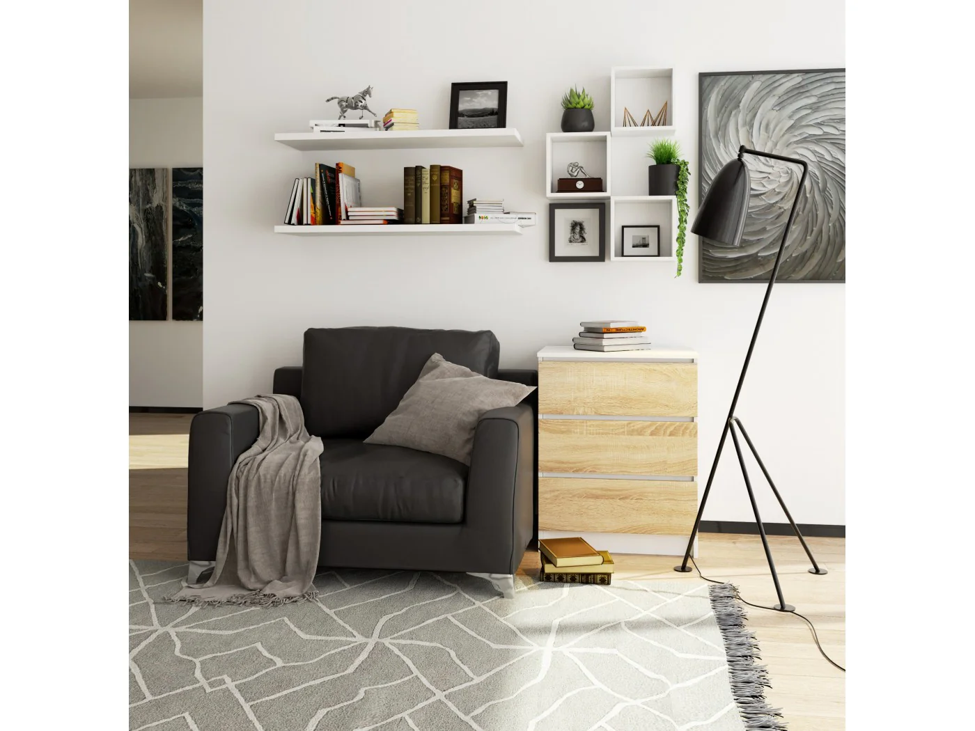 Piękna i praktyczna komoda stanowiąca połączenie dwóch ponadczasowych kolorów - klasycznie pięknej bieli oraz modnego dębu sonoma - to mebel, który cieszy się dużym zainteresowaniem klientów odwiedzających nasz sklep internetowy. Element wyposażenia wnętrz mieszkalnych bądź biurowych wykonano z płyty laminowanej o grubości 16 milimetrów. Wykazuje ona odporność na ścieranie, a krawędzie mebla oklejono obrzeżem ABS. Szerokość komody to 60 centymetrów, dzięki czemu spokojnie zmieści się ona nawet w stosunkowo niewielkich pomieszczeniach. Wygodna w codziennym użytkowaniu oraz niesprawiająca w utrzymaniu czystości propozycja naszego sklepu to połączenie wysokiej jakości oraz konkurencyjnej ceny. Do mebla można dopasować inne elementy wyposażenia, które znajdują się w naszym sklepie internetowym.