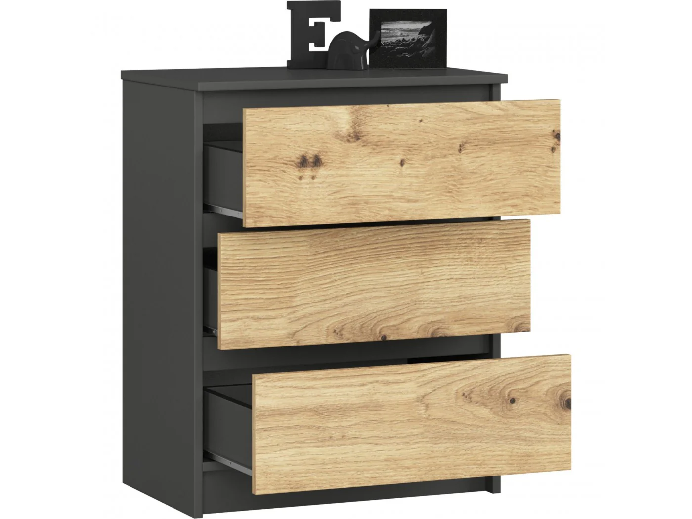 KOMODA K60 3SZ CLP GRAFIT SZARY / DĄB ARTISAN