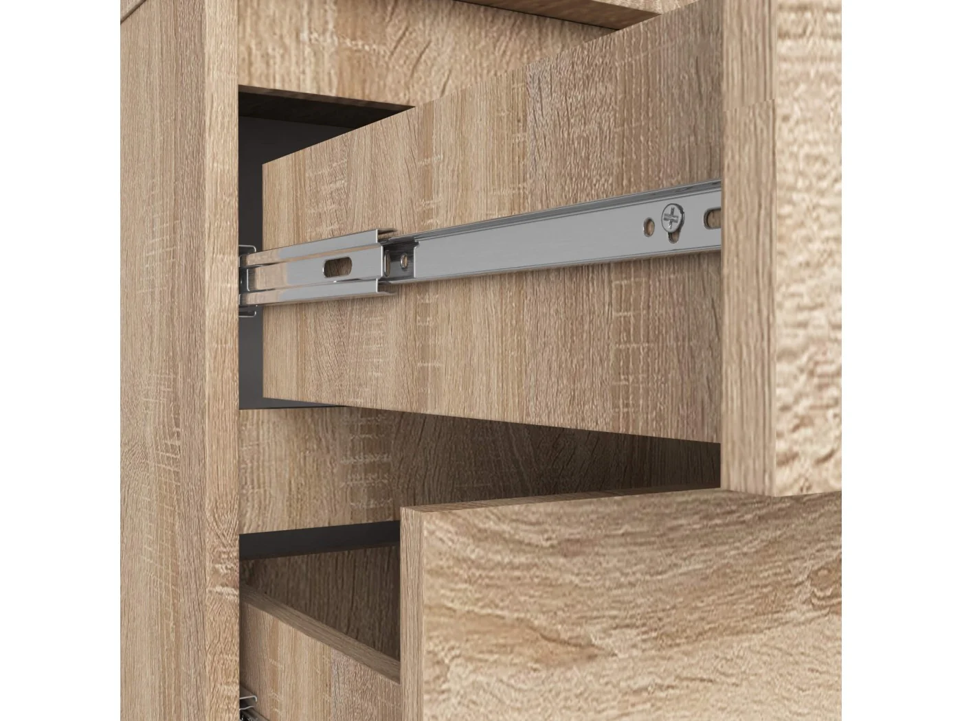 - Szuflady poruszają się na metalowych prowadnicach kulkowych