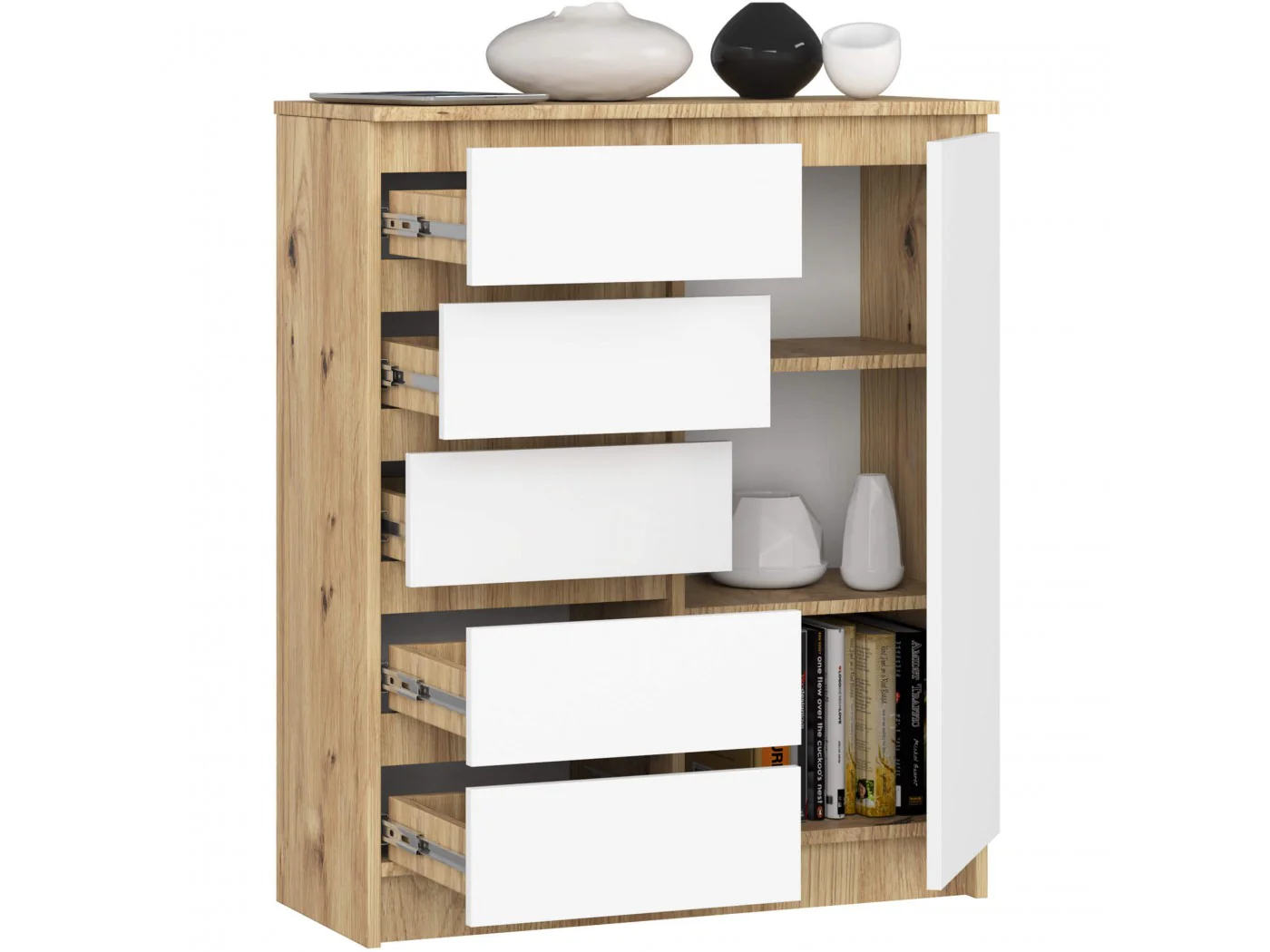 KOMODA K80 1D 5SZ PK DĄB ARTISAN / BIAŁA