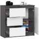 Komodę K 80 cm JERRY można swobodnie łączyć z innymi meblami, takimi jak mniejsze i większe szafy, biurka czy regały, również wchodzącymi w skład oferty. To dobrej jakości, praktyczne meble w korzystnych cenach. Dzięki nim uda się stworzyć jasną, przyjazną dla oka przestrzeń wyposażoną w proste, ale eleganckie meble idealnie pasujące do każdego nowocześnie urządzonego wnętrza.