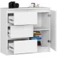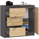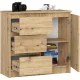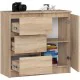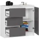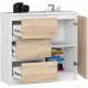 Niewielka komoda to element wyposażenia, który znajdzie zastosowanie w każdym pomieszczeniu. Nowoczesne barwy, solidna konstrukcja i staranne wykonanie zaowocowało powstaniem szafki, która sprawdzi się na przykład w przedpokoju, pokoju dziennym czy młodzieżowym, a także w sypialni. Może być wykorzystana również w pomieszczeniu biurowym, gdzie umożliwi przechowywanie licznych dokumentów oraz innych artykułów o charakterze biurowym. Komoda składa się z jednych drzwiczek (w środku znajdują się dwie półki) oraz 3 szuflad. Mebel łączy w sobie kolorystykę dąb artisan i bieli.