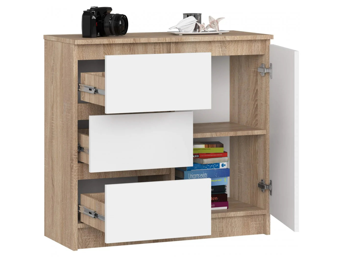 Komoda z szufladami z uchwytami ARIZONA 80 1D3SZ biała, dąb sonoma, dąb craft