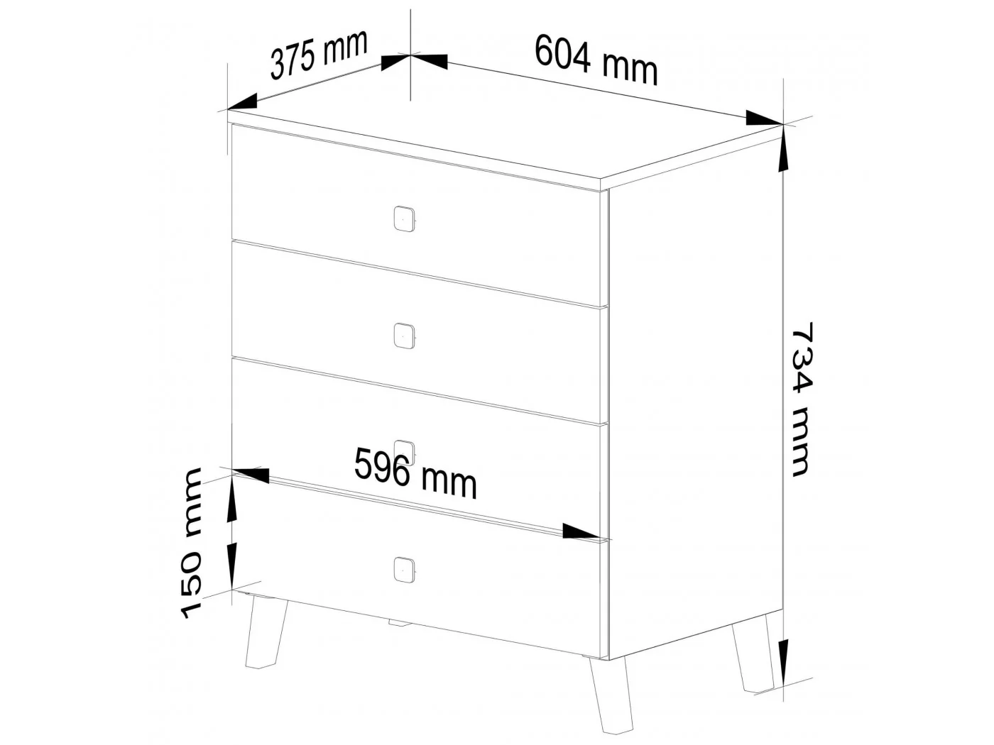 - Komoda jest meblem wykonanym z wysokogatunkowej płyty laminowanej o grubości 16 milimetrów;
