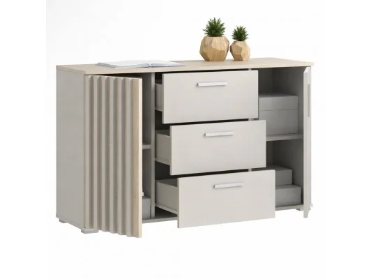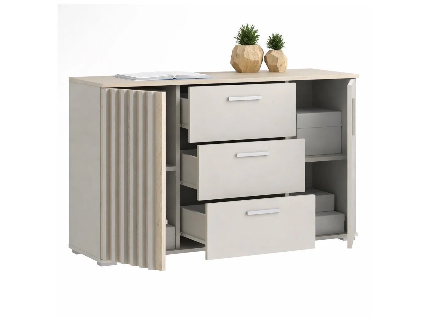 Komoda Montana 140 2D3SZ z drzwiami i szufladami – kaszmir / dąb cremona, loft, lamele
