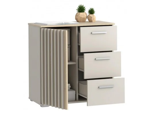Stylowa i pojemna komoda Montana 80 w kaszmirze z lamelami – nowoczesny design, funkcjonalne szuflady i solidne wykonanie do salonu, sypialni lub biura.