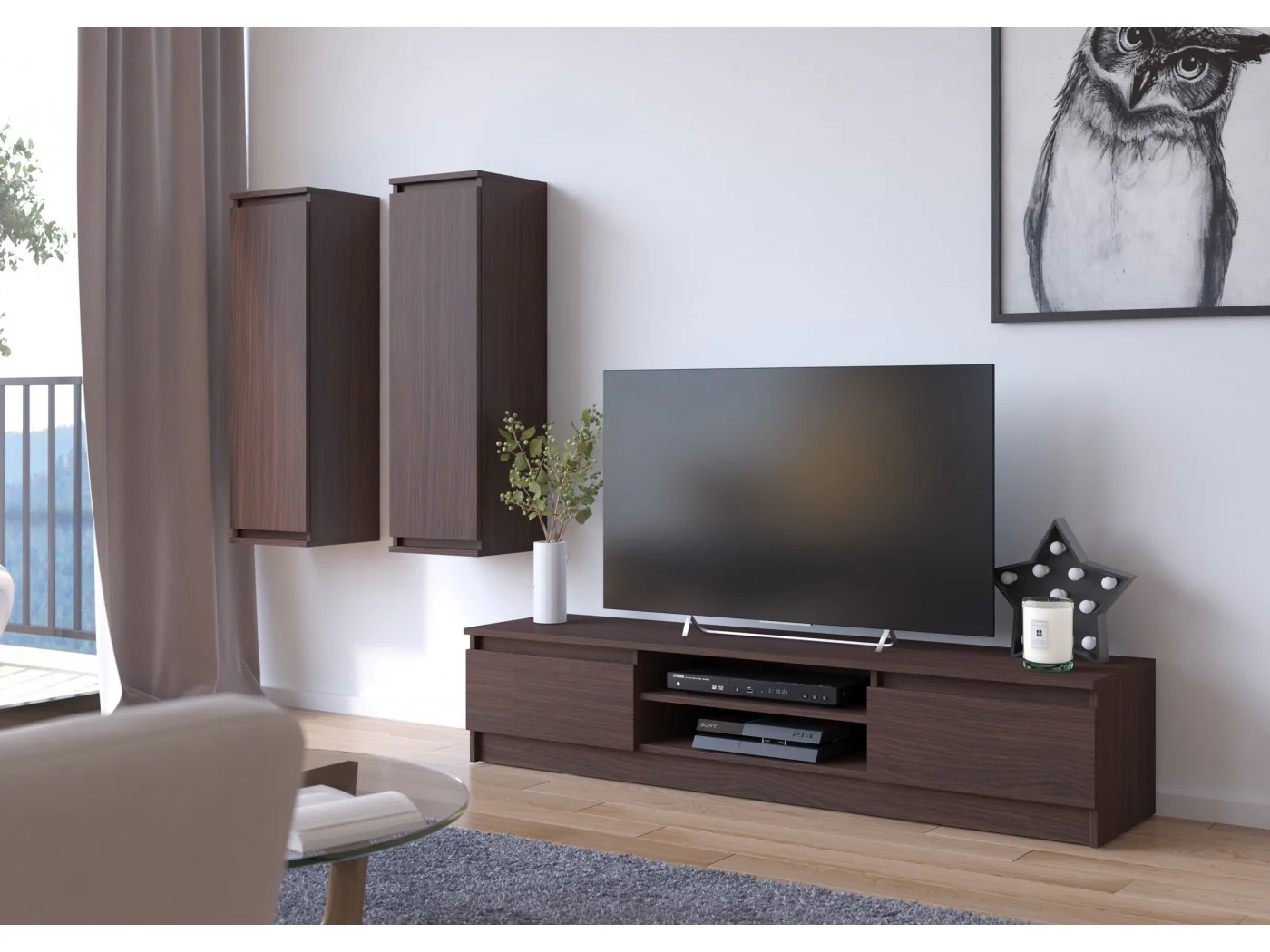 Nowoczesny stolik pod telewizor, który zachwyca pięknym wykończeniem i trwałością. Rozwiązanie świetnie sprawdzi się w salonach wykończonych klasycznie i nieco bardziej nowocześnie czy ekstrawagancko. Produkt wykonano z najwyższej klasy płyty laminowanej, której grubość wynosi dokładnie 16 milimetrów. Materiał jest odporny na ścieranie, solidny i niezwykle trwały. Wytrzymałość potęgują obrzeża ABS zwiększające odporność całej konstrukcji na uszkodzenia. Piękny kolor Wenge, w jakim wykończono egzemplarz sprawia, że szafkę wykorzystać można zarówno do salonu, jak i pokoju młodzieżowego czy poczekalni w Twoim gabinecie.