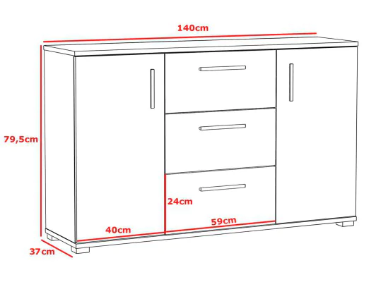 ✔️ 2x drzwi, 3x duże szuflady