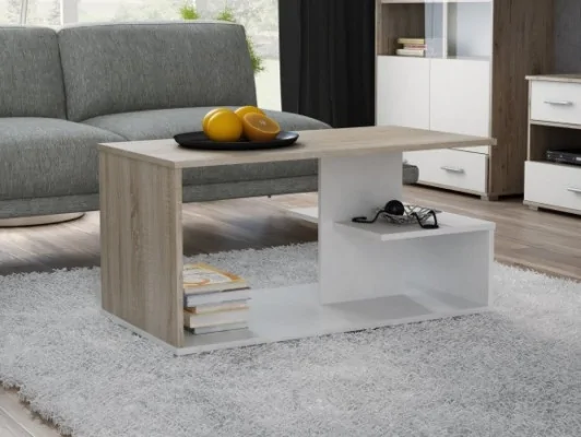 Designerski stolik kawowy Denver 1 do salonu biały, sonoma, dąb artisan