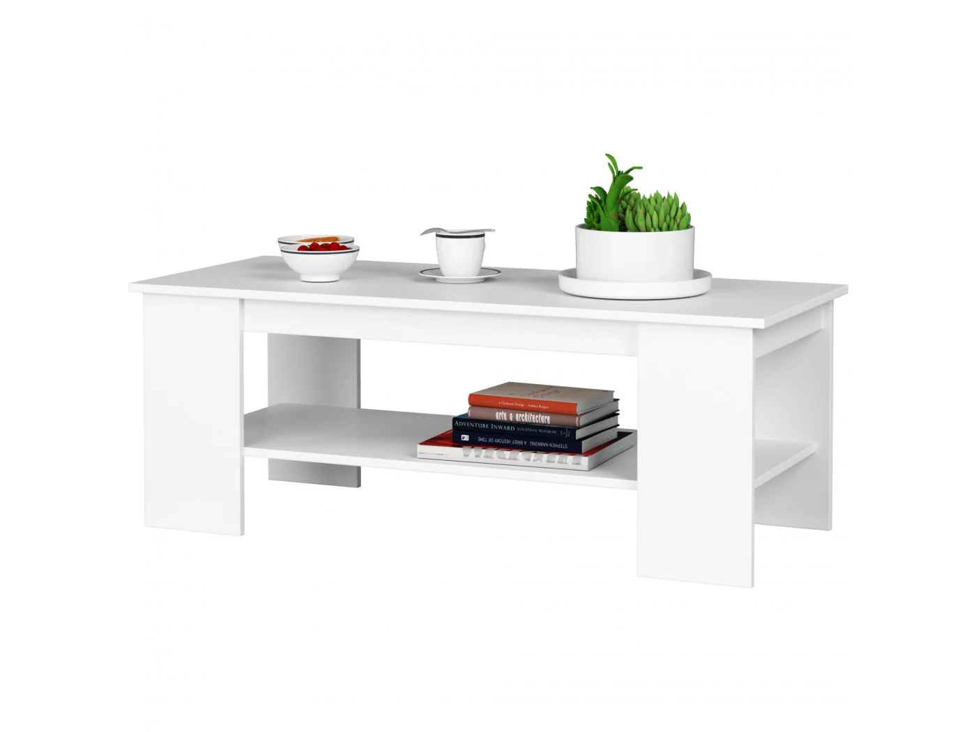 Ława kawowa Kami biała to połączenie atrakcyjnego i estetycznego wyglądu z funkcjonalnością i uniwersalnością zastosowania. Dzięki ciepłej białej kolorystyce ława doskonale wkomponuje się we wnętrze nowoczesne i tradycyjne, jednocześnie wizualnie powiększając i rozjaśniając pomieszczenie. Niewielki rozmiar mebla sprawia, że ława doskonale spełni swoje zadanie również w małym pokoju w bloku. Ława jest meblem o wszechstronnym przeznaczeniu. Może być wykorzystywana nie tylko do picia kawy, herbaty lub zimnych napojów, przyjmowania gości czy codziennego relaksu. Stolik z funkcjonalnym blatem nadaje się także do pracy z laptopem, zaś umieszczona na dole mebla szeroka półka umożliwia położenie na niej akcesoriów komputerowych i materiałów do pracy. Biała ława kawowa Kami wykonana została z odpornej na ścieranie i wodoodpornej płyty laminowanej, dzięki czemu blat mebla może z powodzeniem być czyszczony również na mokro. Krawędzie ławy zostały wykończone wytrzymałymi obrzeżami ABS, co dodatkowo zwiększa odporność mebla na uszkodzenia.