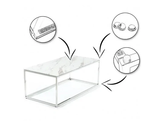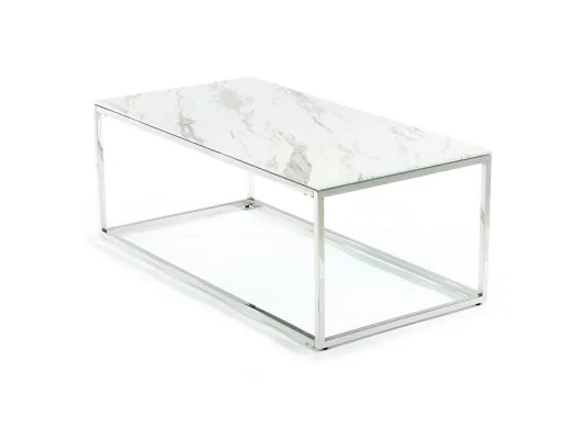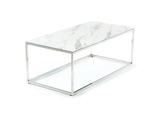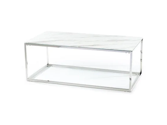 Stylowy stolik kawowy ława Rekta w kolorze srebrno-białym.