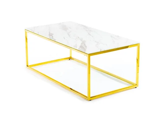 Stylowy stolik kawowy ława Rekta w kolorze złoto-białym.