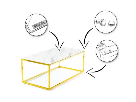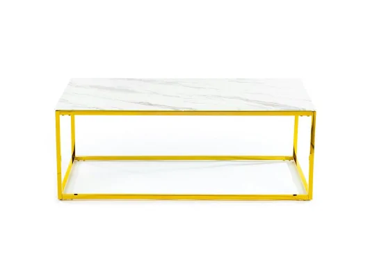 Nowoczesny stolik kawowy ława Rekta w stylu glamour do salonu w kolorze złoto-białym