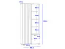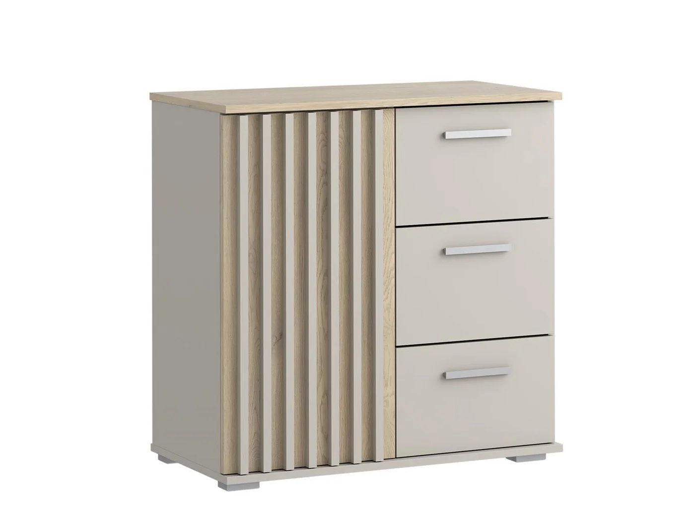 1 drzwi + 3 pojemne szuflady, nowoczesne lamele, płaskie uchwyty, stabilne nóżki, prowadnice rolkowe z blokadą, idealna na odzież, podręczniki i akcesoria.