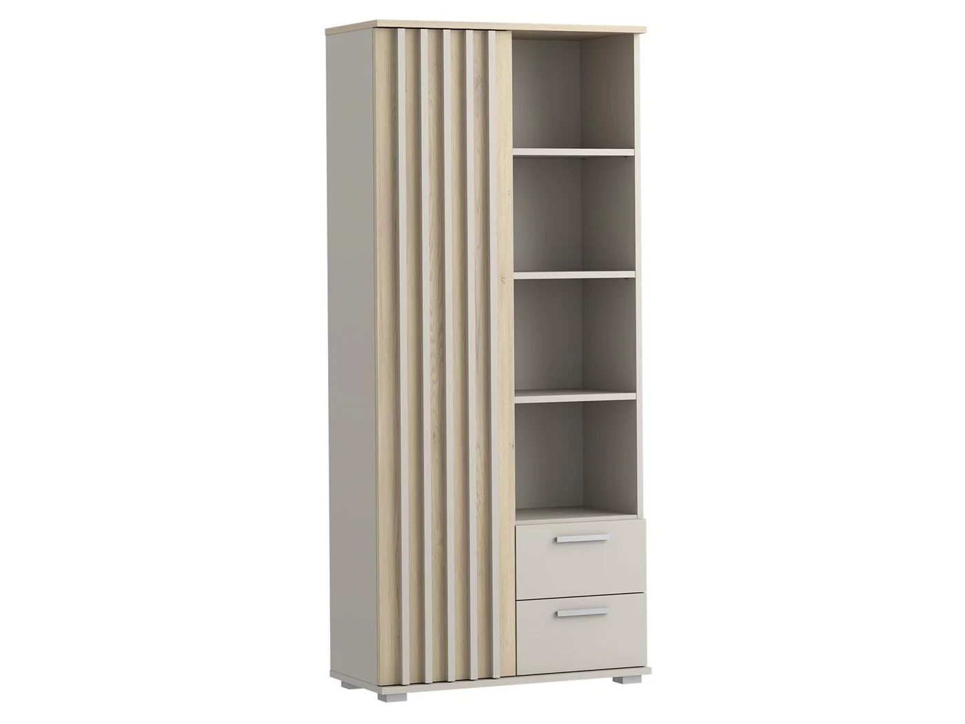 Połączenie otwartych półek i zamykanej części, 2 szuflady o głębokości 30 cm, praktyczne miejsce na książki i rzeczy osobiste, stylowe lamele, lekka i nowoczesna konstrukcja.