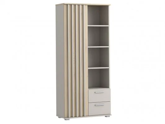 Połączenie otwartych półek i zamykanej części, 2 szuflady o głębokości 30 cm, praktyczne miejsce na książki i rzeczy osobiste, stylowe lamele.