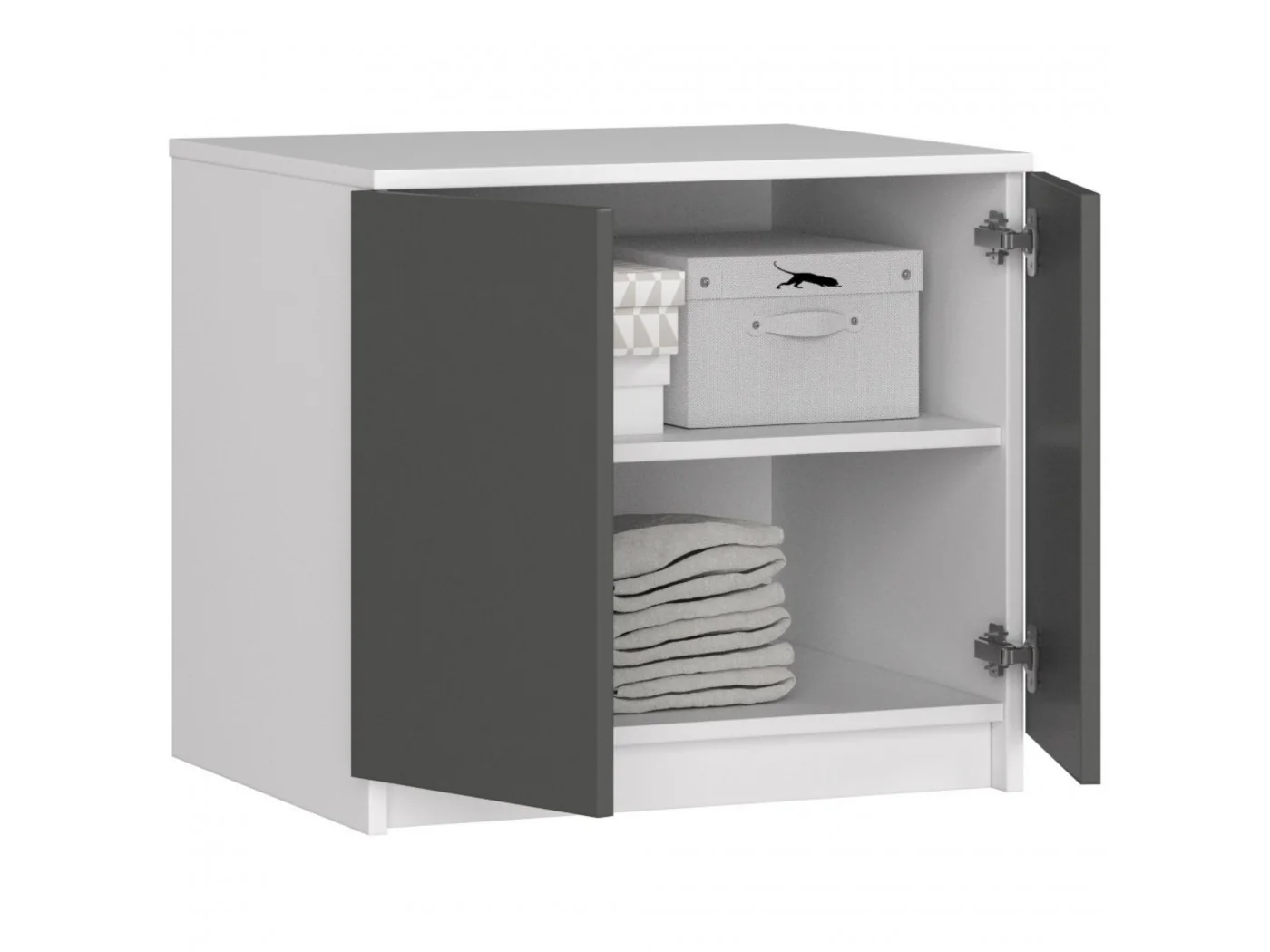 - Wewnątrz drzwiczek znajdują się dwie pojemne półki przeznaczone do dowolnego zagospodarowania;