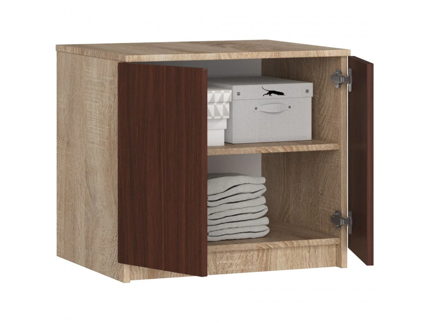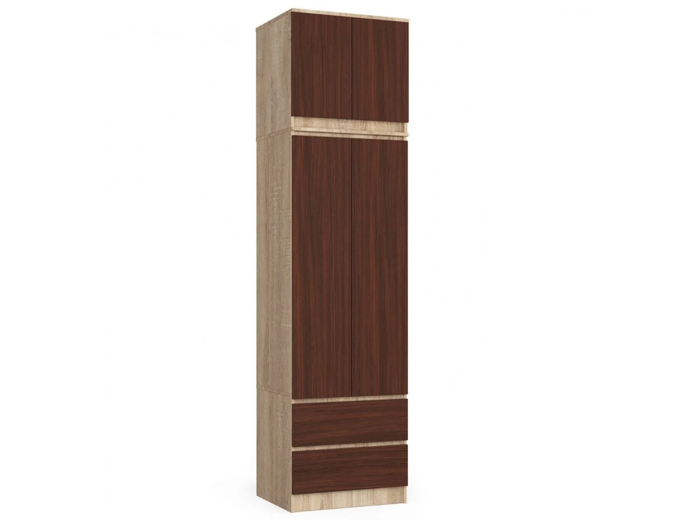 Nadstawka na szafę w kolorze dąb sonoma z frontami wenge o szerokości 60 cm. jest propozycją skierowaną do osób, które chcą zapewnić sobie jeszcze więcej miejsca do przechowywania odzieży, obuwia, toreb, dokumentów czy innych artykułów w sypialni, przedpokoju, pokoju dziennym bądź biurze. Minimalistyczny design prezentowanego produktu w połączeniu z funkcjonalnością oraz solidnym wykonaniem sprawia, że nadstawka na szafę cieszy się dużym zainteresowaniem.