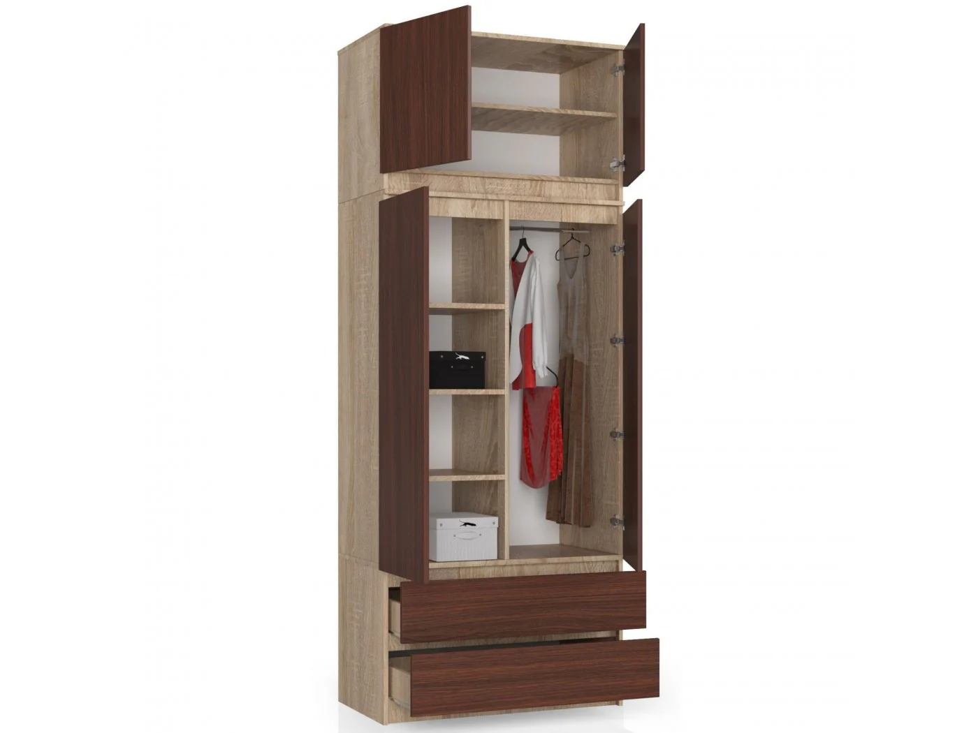 SZAFA Z NADSTAWKĄ S 90 cm 2 DRZWI 2 SZUFLADY PK WENGE / SONOMA