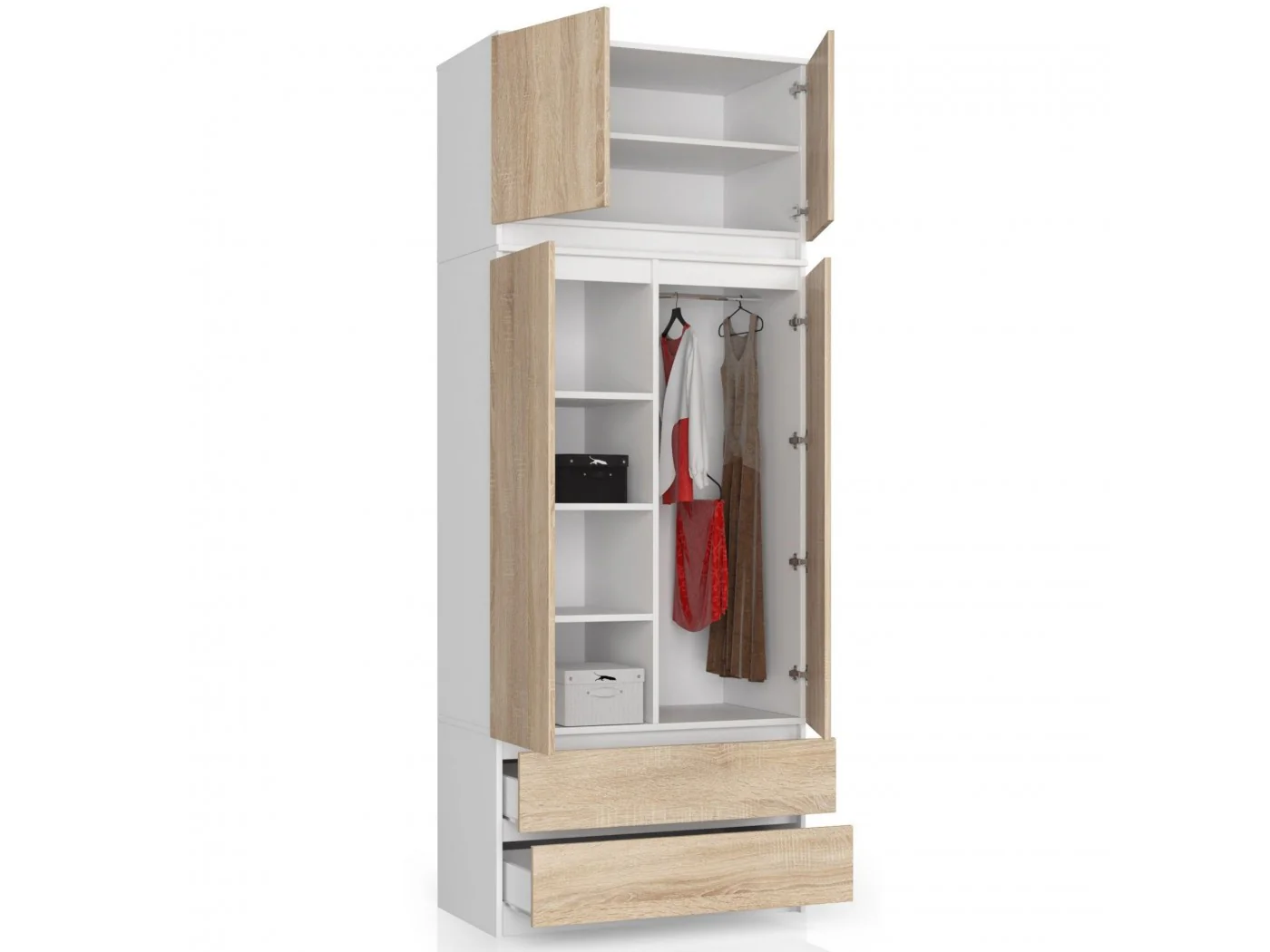 Nadstawka na szafę S 90 cm - biała-dąb sonoma - 2 drzwi