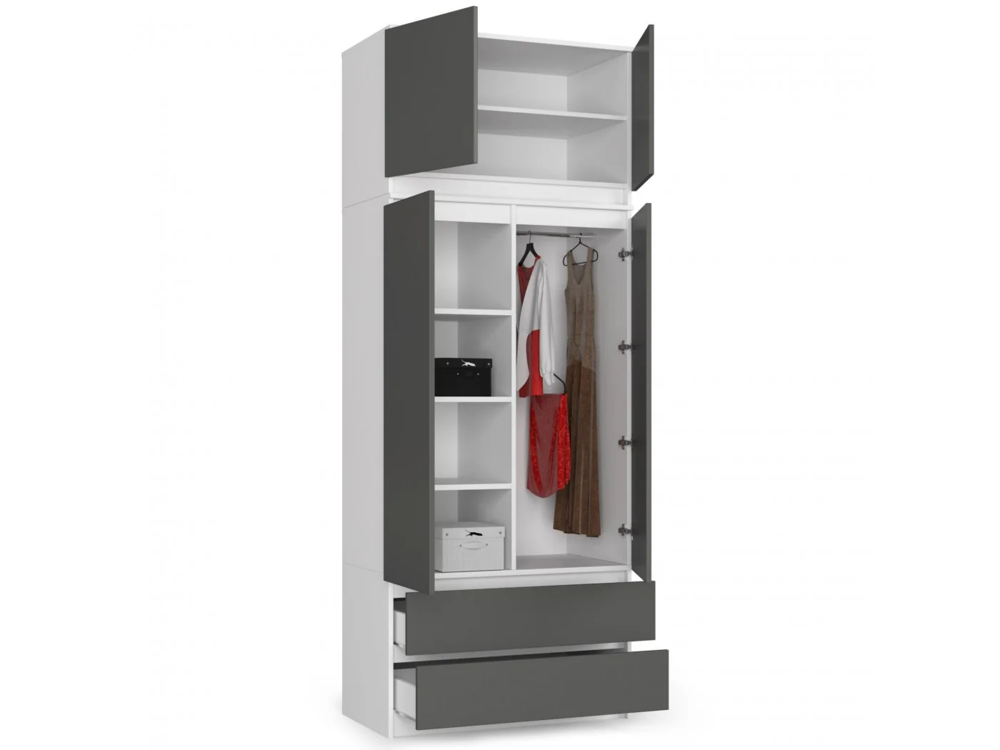 Nadstawka na szafę S 90 cm - biała-grafit szary - 2 drzwi