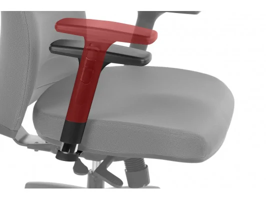 Podłokietniki regulowane (góra-dół, przód-tył, na boki) z miękkimi, poliuretanowymi nakładkami.