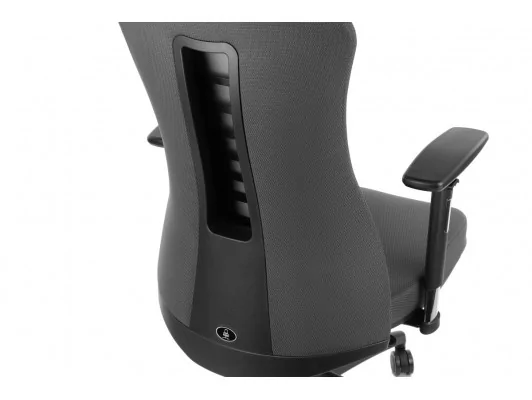 Oparcie fotela tapicerowane z wyprofilowaniem lędźwiowym.