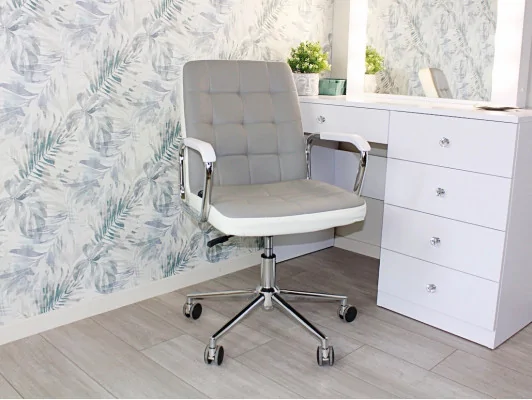 Nowoczesny fotel biurowy obrotowy FTR 4 szary mesh, skóra