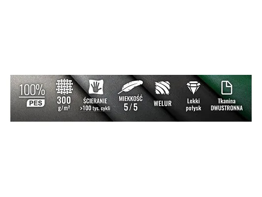 - TKANINA TAPICERSKA: Tkanina obiciowa, tapicerska. Wysokiej jakości welurowa tkanina. Powierzchnia charakteryzująca się gęstym meszkiem. Tkanina śliska w dotyku. Idealnie miękka i delikatna SOFT TOUCH, mieniąca się pod kątem padania światła. Tkanina nie posiada PODKŁADU - nadaje się na zasłony, elementy dekoracyjne, obicia mebli. Sprawdzi się zarówno w eleganckich jak i klasycznych wnętrzach. Cieszy się popularnością ze względu na swój subtelny wygląd. Tkanina posiada CERTYFIKAT OEKO-TEX.