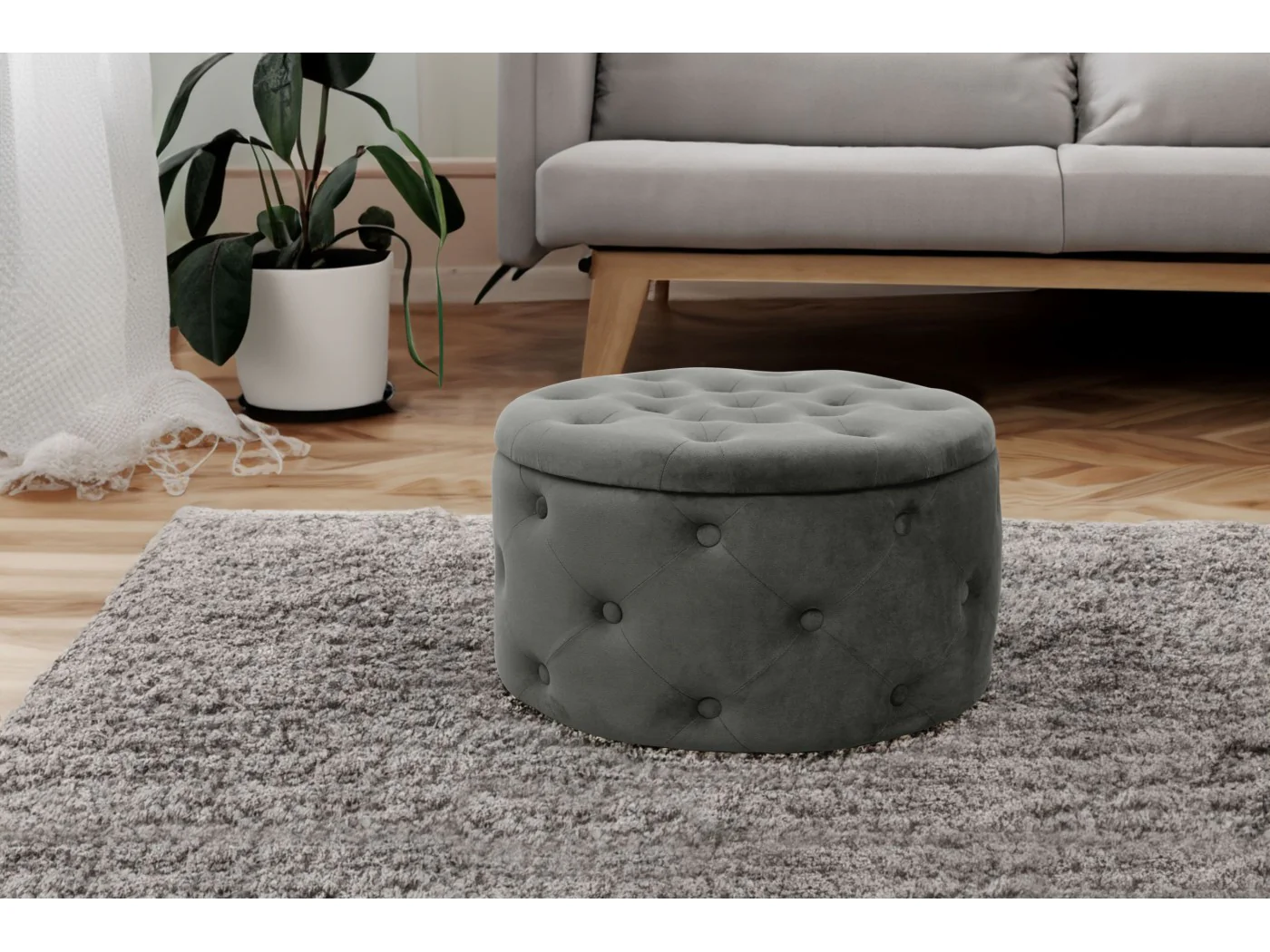 Podnóżek czy też pufa to świetny dodatek do salonu czy sypialni. To dzięki niemu zmęczone nogi po całym dniu chodzenia mogą odpocząć a gdy pufa wykonana jest z miękkiego weluru to tylko potęguje przyjemne doznania z odpoczynku. Nowoczesny wygląd to dodatki, w naszej pufie zastosowaliśmy pikowania, które nadają eleganckiego stylu. Otwierane wieczko daje dostęp do pojemnika do którego wsadzimy przedmioty niepotrzebne w codziennym użytkowaniu.
