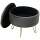 Podnóżek czy też pufa to świetny dodatek do salonu czy sypialni. To dzięki niemu zmęczone nogi po całym dniu chodzenia mogą odpocząć a gdy pufa wykonana jest z miękkiego weluru to tylko potęguje przyjemne doznania z odpoczynku. Nowoczesny wygląd to dodatki, w naszej pufie zastosowaliśmy nogi metalowe pomalowane na złoty kolor, który jest tak modny w tym roku. Otwierane wieczko daje dostęp do pojemnika do którego wsadzimy przedmioty niepotrzebne w codziennym użytkowaniu.