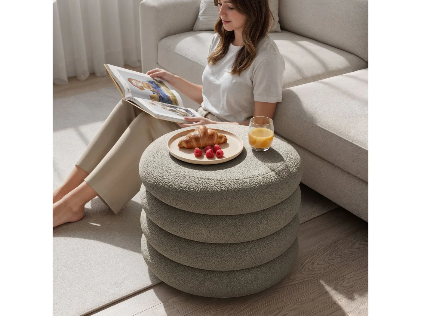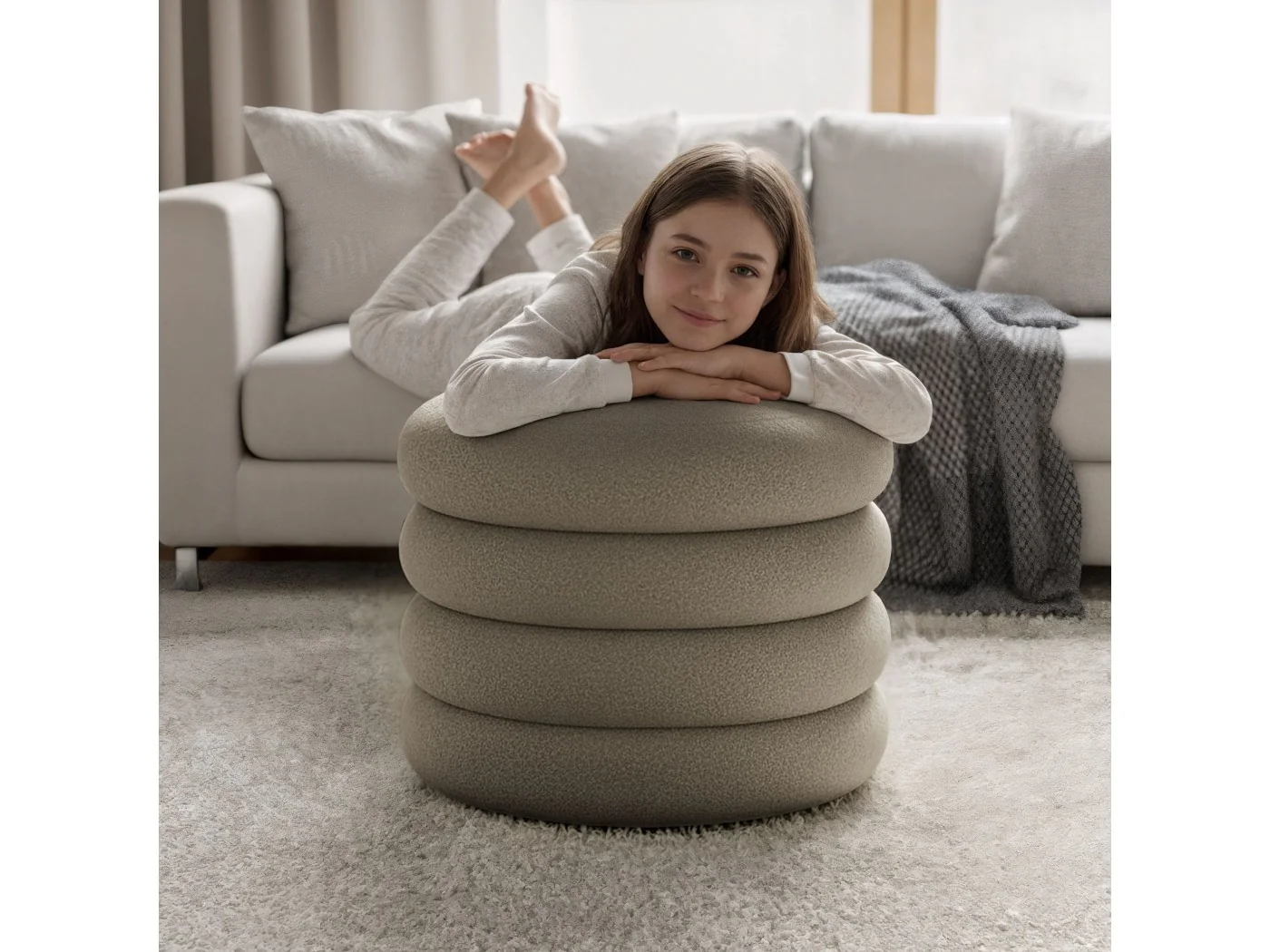 Otwierane pufy wykonane z miękkiego materiału teddy to idealne połączenie przytulnego wyglądu i praktycznych rozwiązań. Ich puszysta, ciepła faktura tworzy w pomieszczeniu przyjemny klimat, a pojemny schowek ukryty pod siedziskiem pomaga w wygodny sposób przechowywać drobiazgi i utrzymywać porządek. To funkcjonalny element wyposażenia, który dodaje wnętrzu nie tylko komfortu, ale i stylowego wykończenia.