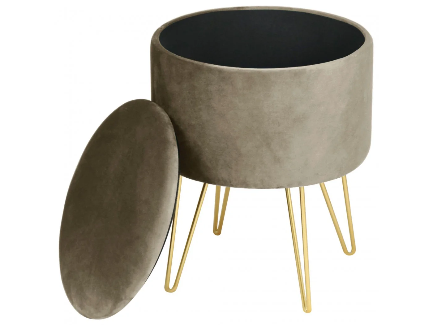 Podnóżek czy też pufa to świetny dodatek do salonu czy sypialni. To dzięki niemu zmęczone nogi po całym dniu chodzenia mogą odpocząć a gdy pufa wykonana jest z miękkiego weluru to tylko potęguje przyjemne doznania z odpoczynku. Nowoczesny wygląd to dodatki, w naszej pufie zastosowaliśmy nogi metalowe pomalowane na złoty kolor, który jest tak modny w tym roku. Otwierane wieczko daje dostęp do pojemnika do którego wsadzimy przedmioty niepotrzebne w codziennym użytkowaniu.