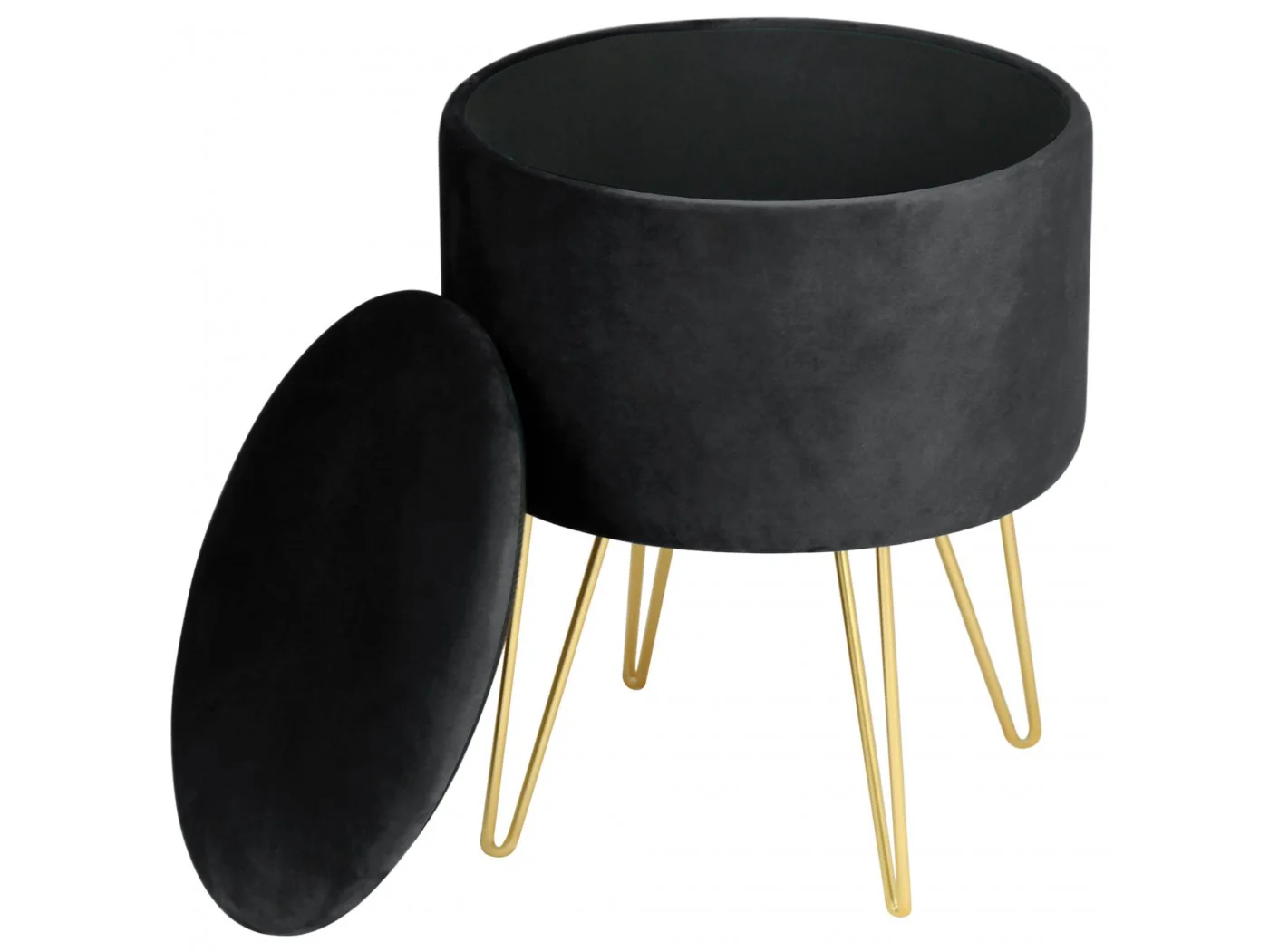 Pufa otwierana z pojemnikiem welurowa LILI Czarna