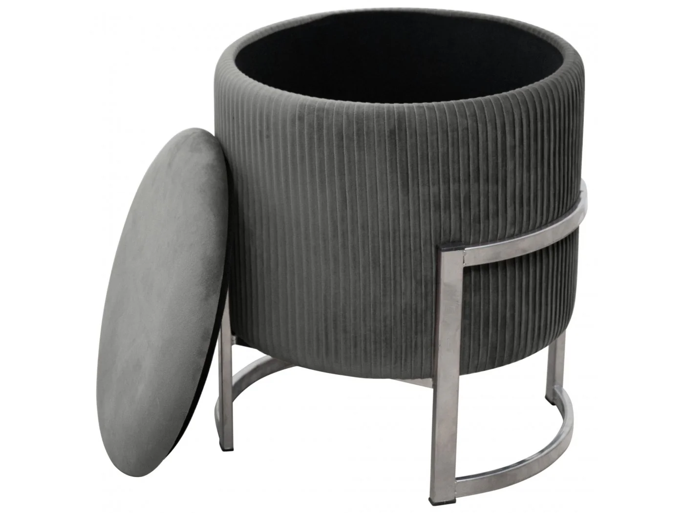 Podnóżek czy też pufa to świetny dodatek do salonu czy sypialni. To dzięki niemu zmęczone nogi po całym dniu chodzenia mogą odpocząć a gdy pufa wykonana jest z miękkiego weluru to tylko potęguje przyjemne doznania z odpoczynku. Nowoczesny wygląd to dodatki, w naszej pufie zastosowaliśmy podstawę metalową w kolorze srebrnym. Otwierane wieczko daje dostęp do pojemnika do którego wsadzimy przedmioty niepotrzebne w codziennym użytkowaniu.