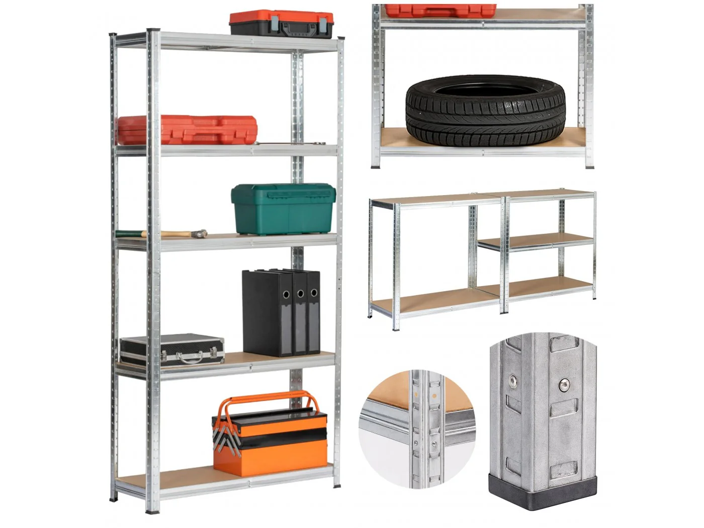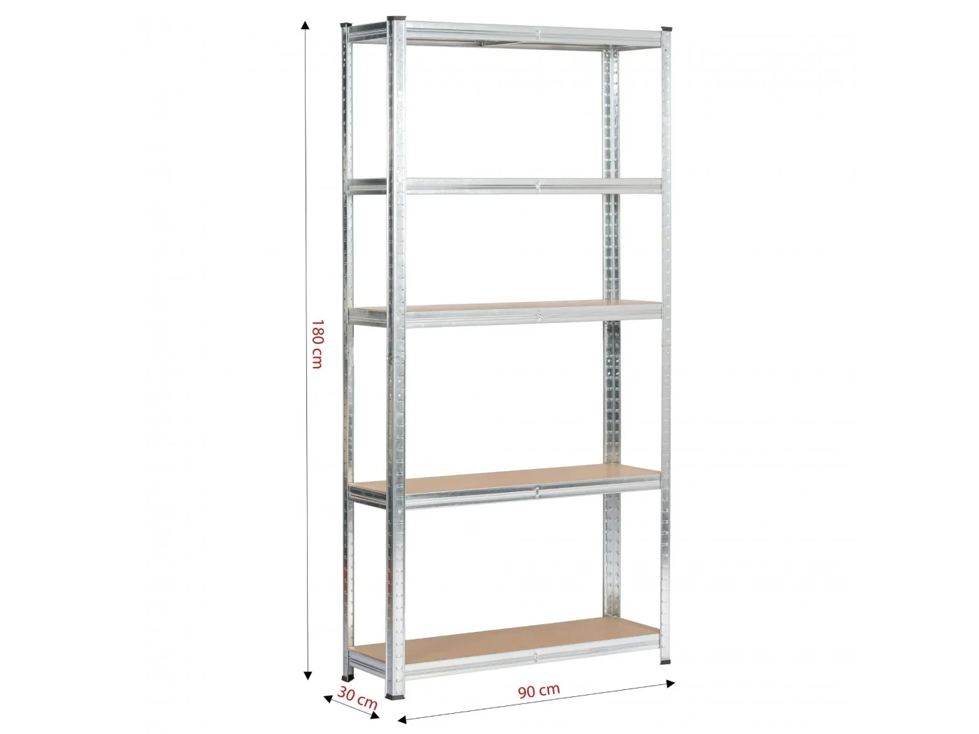 Regał metalowy idealnie pasujący do przechowywania. Nadaje się do garażu, warsztatu, komórki lokatorskiej, jak również do pomieszczeń gospodarczych. Regał w kolorze srebrnym o szerokości 90 cm oraz 180 wysokości. Pólki wykonane z wytrzymałej płyty MDF. Nośność na półkę wynosi 175kg.