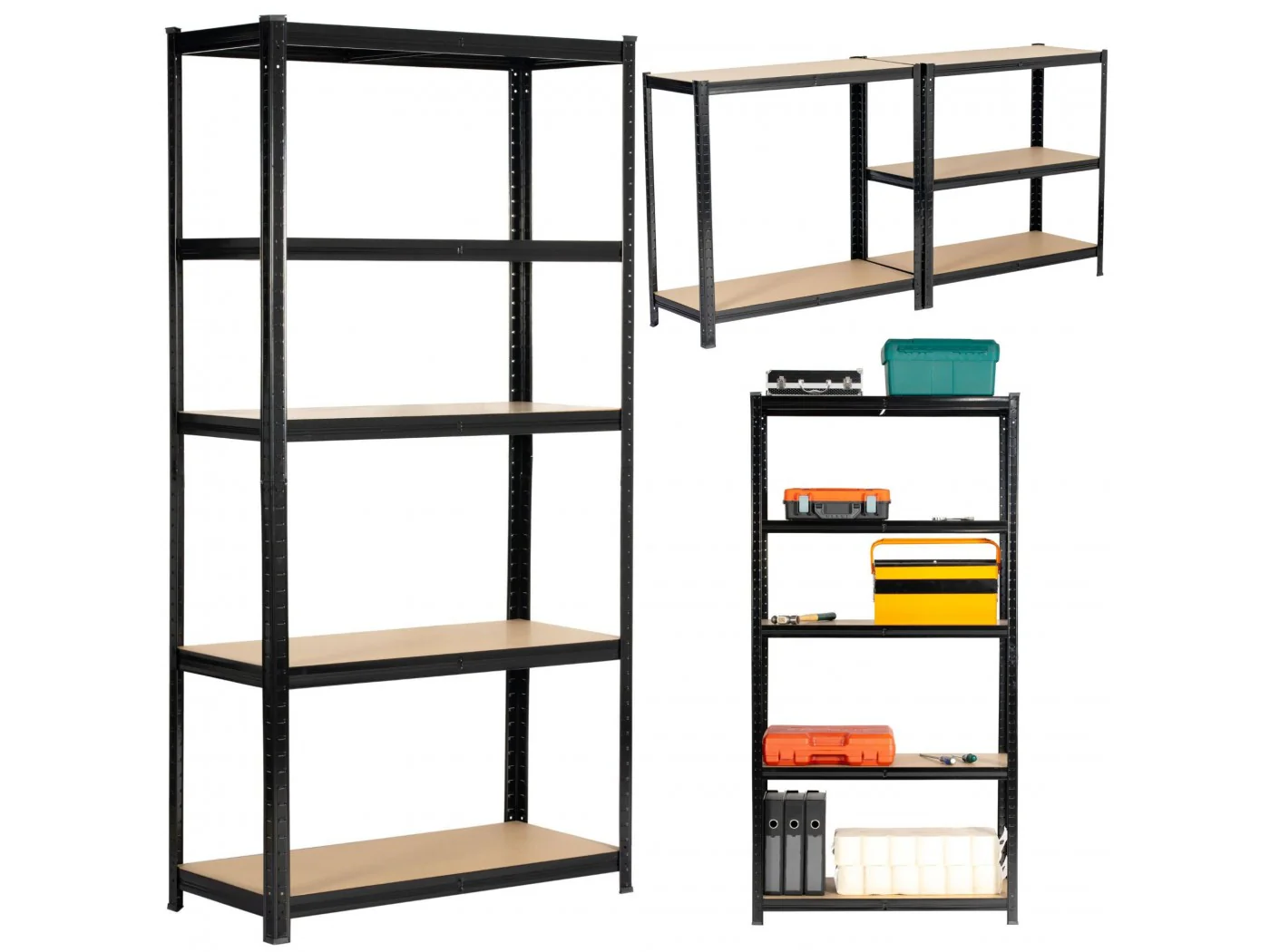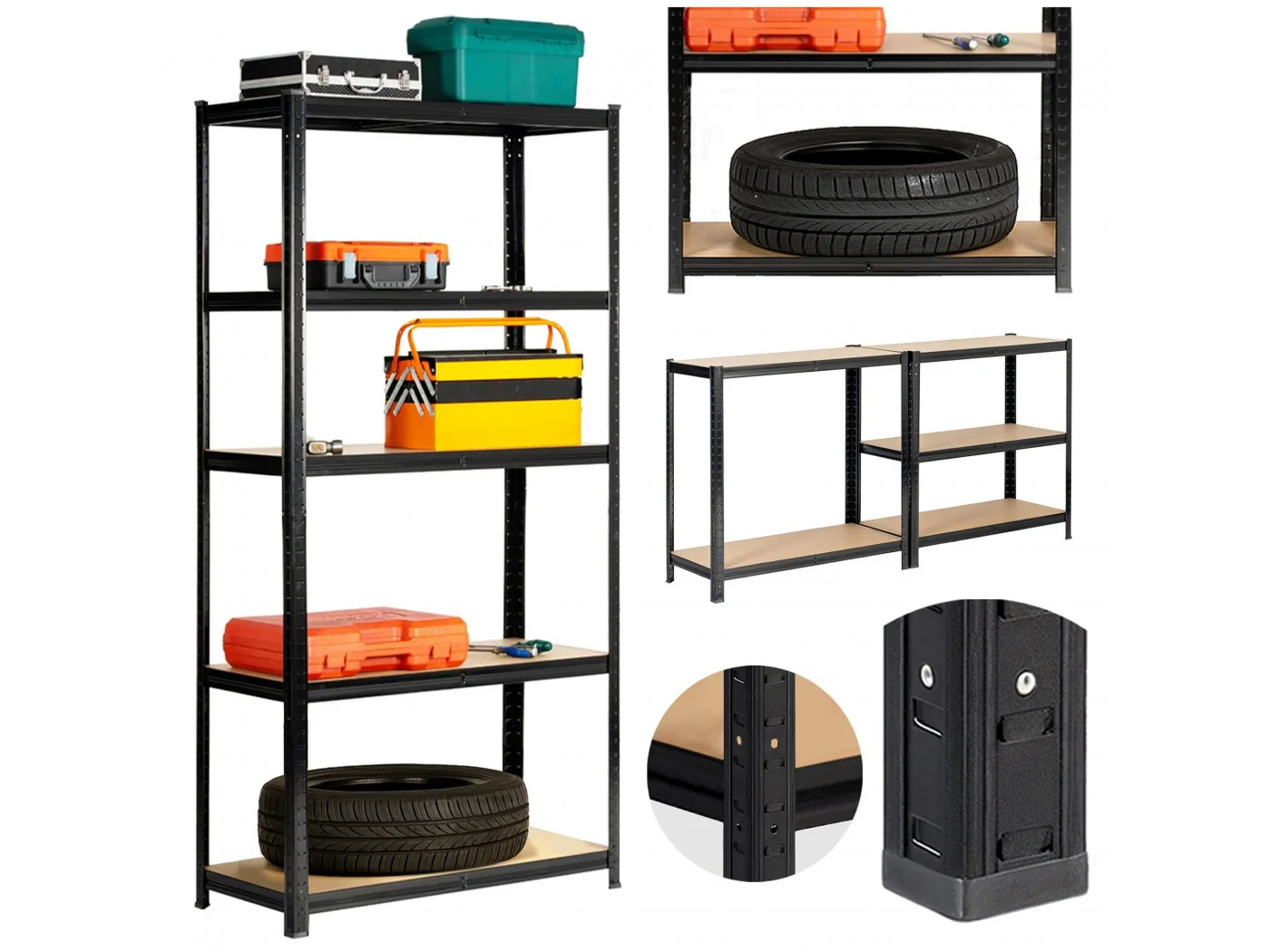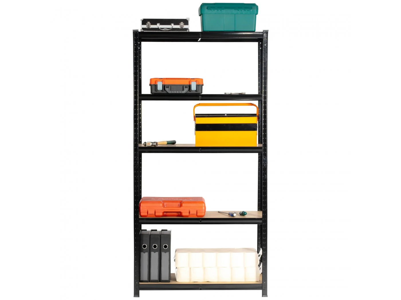 Regał metalowy idealnie pasujący do przechowywania. Nadaje się do garażu, warsztatu, komórki lokatorskiej, jak również do pomieszczeń gospodarczych. Regał w kolorze czarnym o szerokości 90 cm oraz 180 wysokości. Pólki wykonane z wytrzymałej płyty MDF. Nośność na półkę wynosi 175kg.