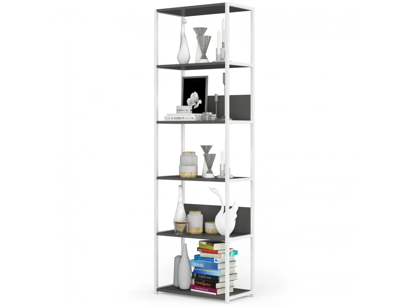 - elegancki wygląd: regał cechuje się prostotą formą, stelaż jest w kolorze białym natomiast płyta jest w kolorze szarym,