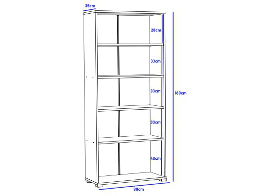 ✅5 przestronnych półek – idealnych na książki, dokumenty, segregatory lub dekoracje