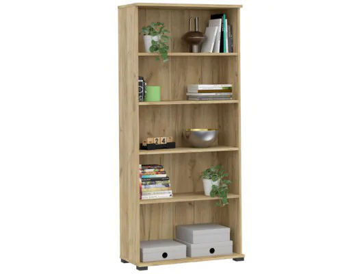 Regał otwarty dąb craft Montana 80 cm – funkcjonalny i elegancki Stylowy regał w kolorze dąb craft z 5 otwartymi półkami. Idealny do biura, salonu, gabinetu czy pokoju młodzieżowego. Wysokość 180 cm, szerokość 80 cm – doskonały do przechowywania książek i dekoracji.
