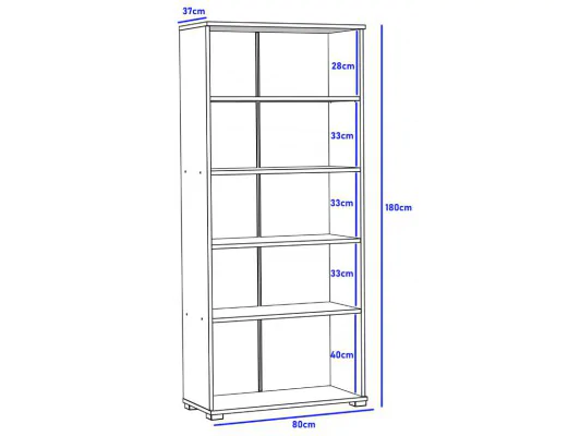 ✅ 5 przestronnych półek – idealne na książki, segregatory, dekoracje