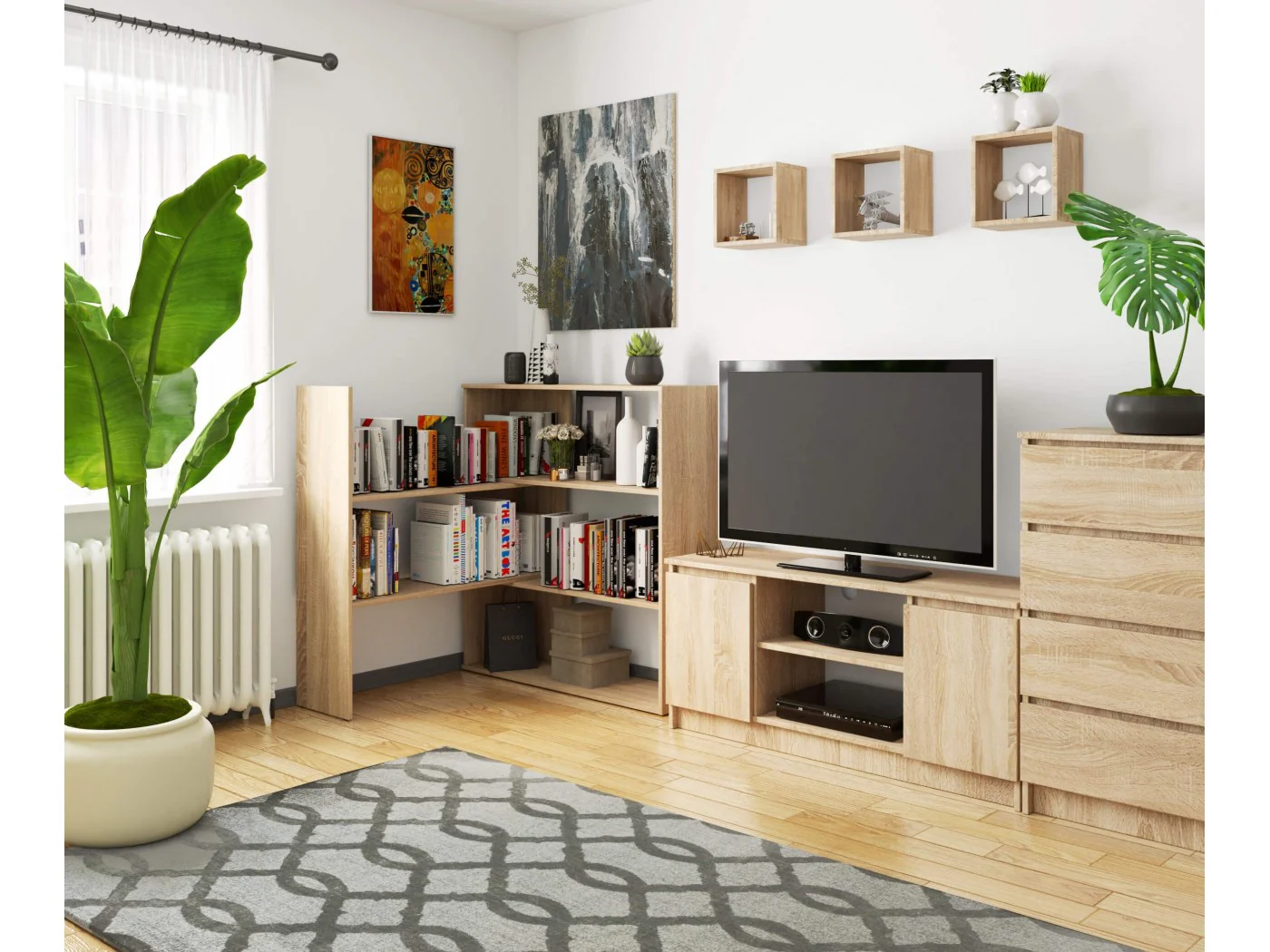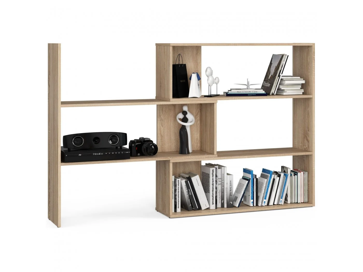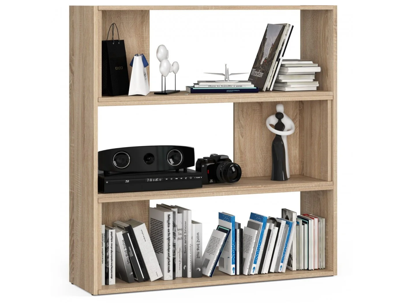 - elegancki wygląd: regał cechuje się prostotą formą, jest w stylowym kolorze dąb sonoma,