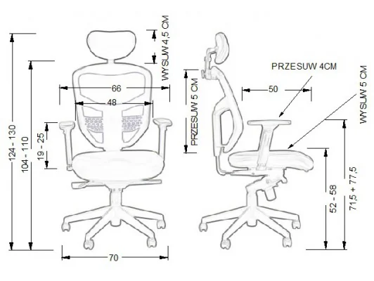 - niezależna regulacja wysokości oparcia.